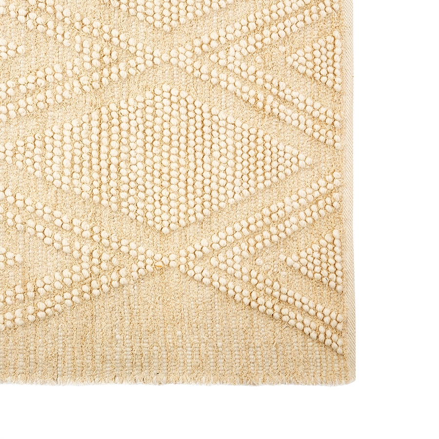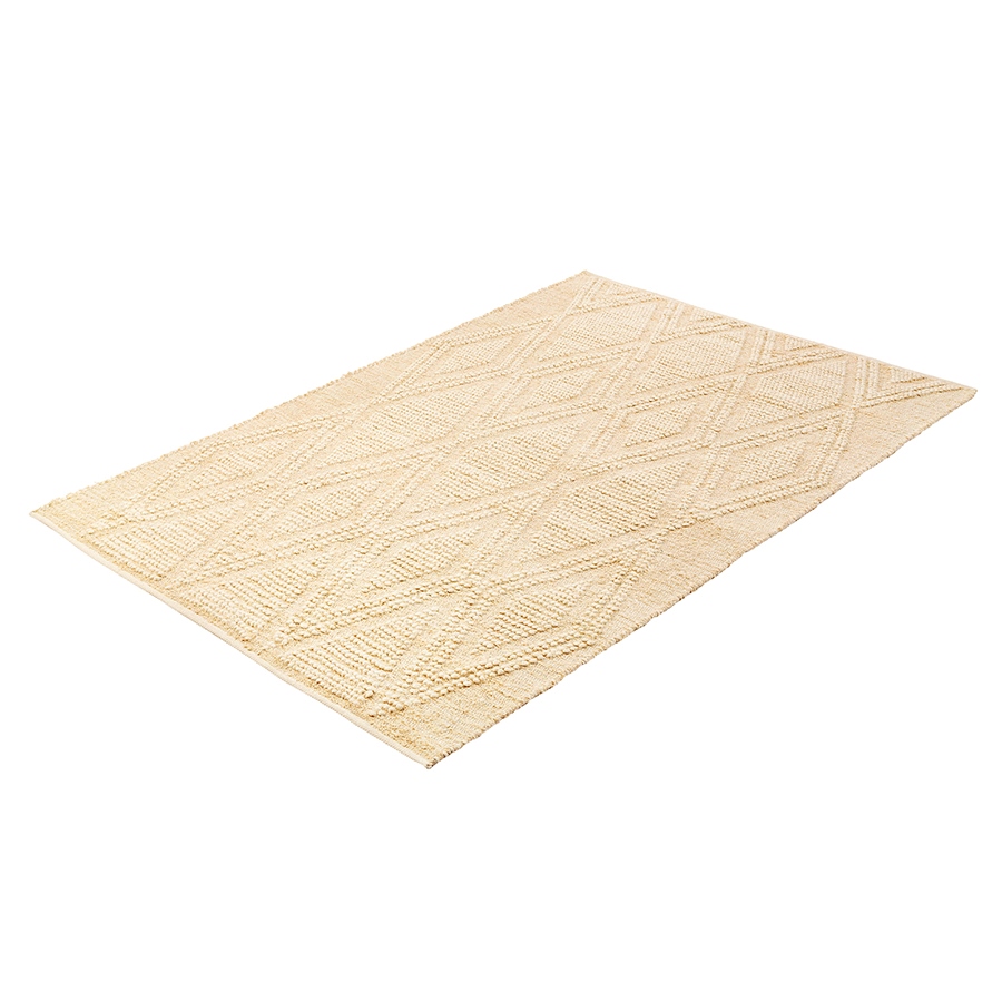 ковёр Shillong из коллекции Ethnic – настоящая находка для ценителей экологичных материалов и простых, лаконичных интерьеров. Благодаря нейтральной цветовой гамме в бежевых тонах и ненавязчивому геометрическому узору это напольное покрытие великолепно вписывается в различные дизайнерские решения и добавляет колоритные нотки этники в любое оформление. Сочетание высококачественной шерсти и износостойкого переработанного хлопка делает ковёр прочным, практичным и долговечным. Натуральные материалы обеспечивают безопасное использование, не вызывают аллергических реакций.