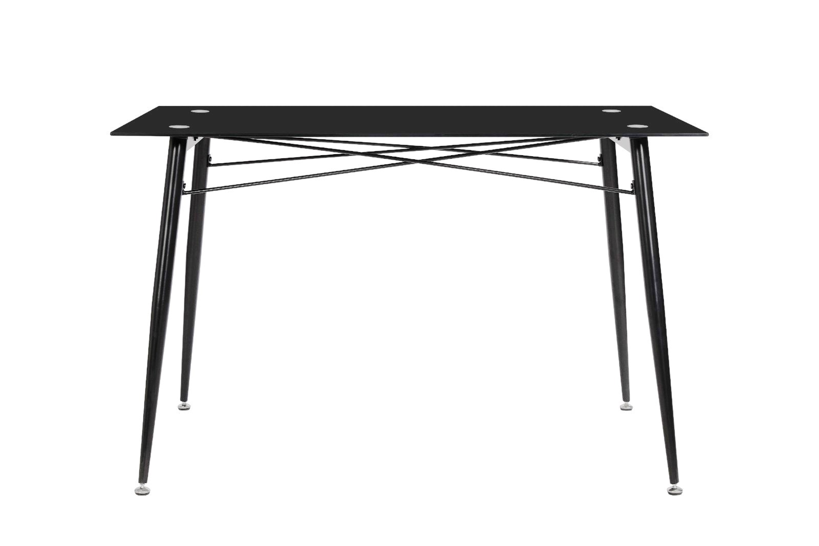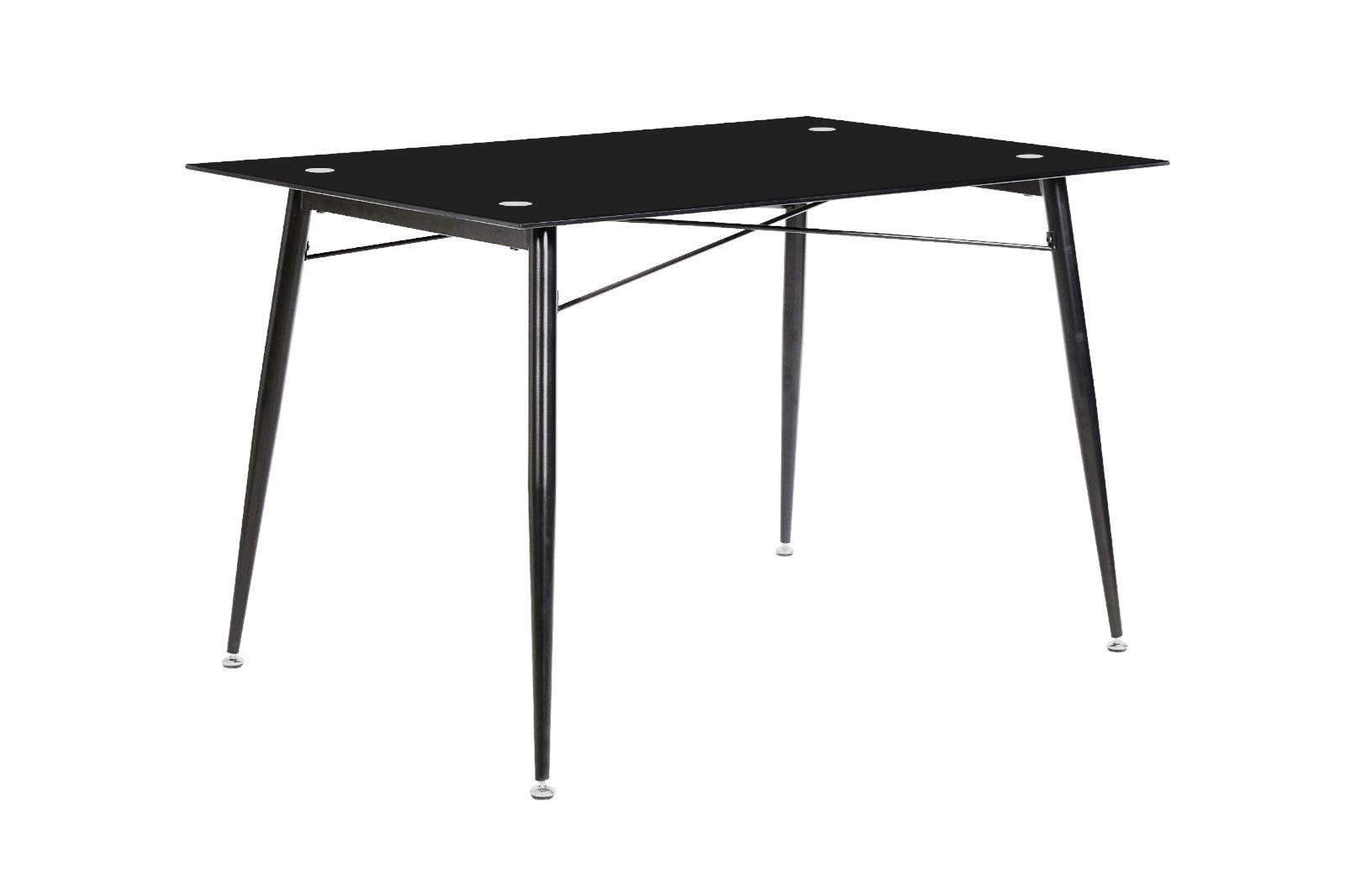 Стол обеденный прямоугольный с прочной закаленной стеклянной столешницей. Толщина столешницы - 8 мм.‹br /›Ножки - крашенный металл