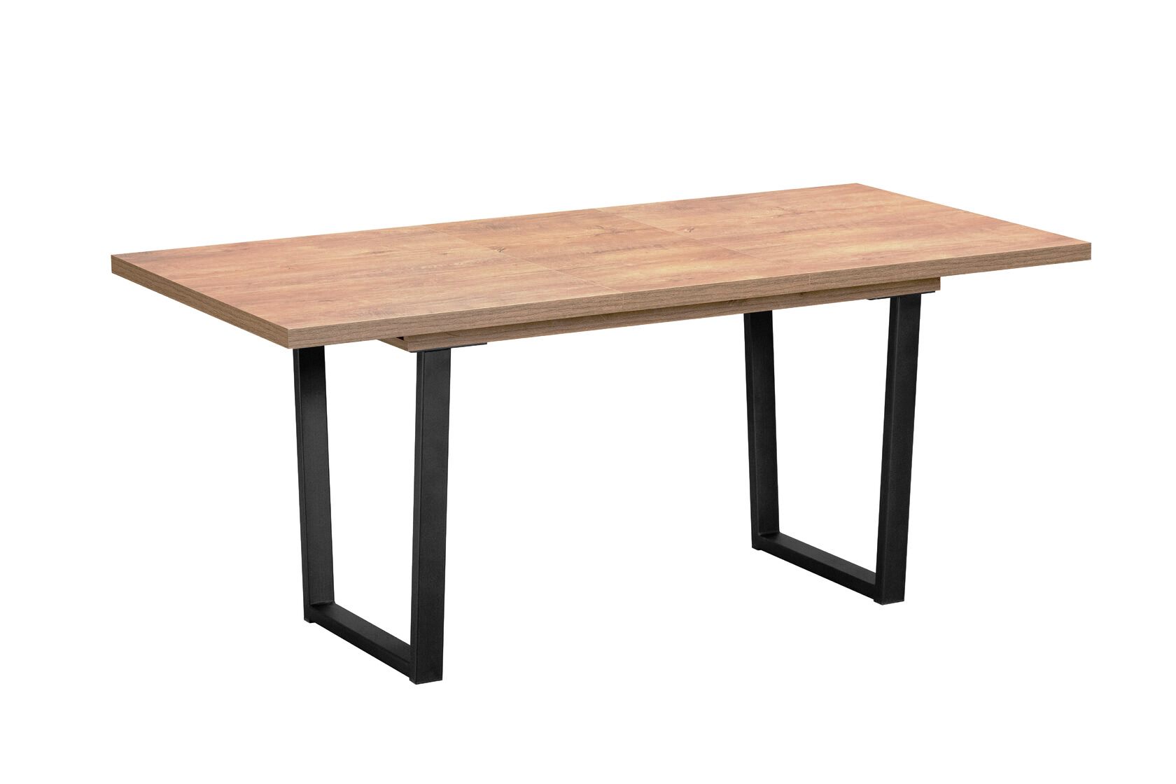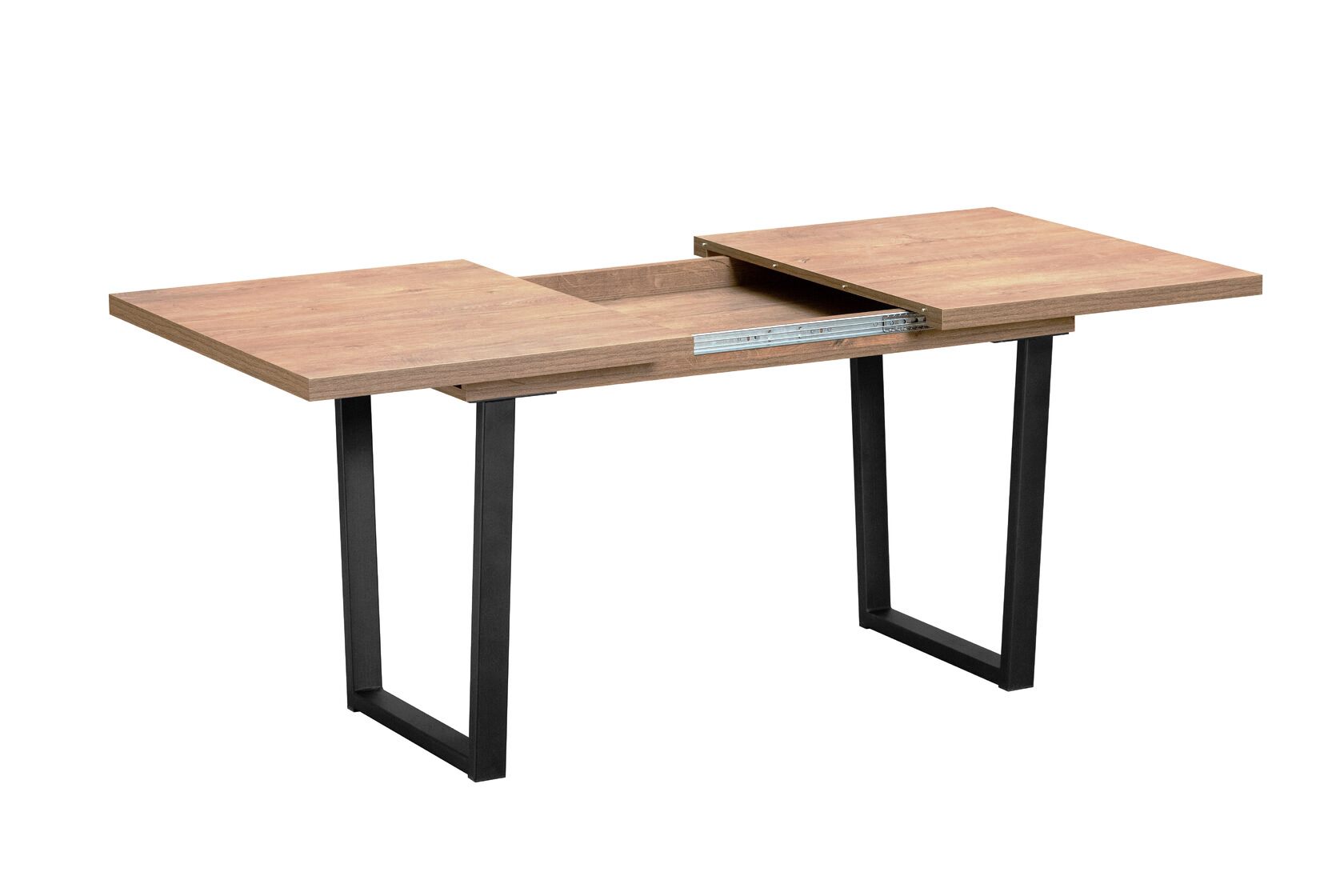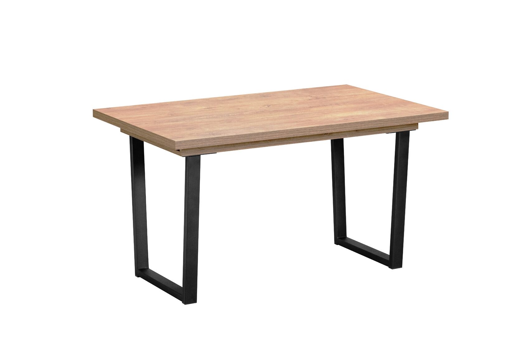 ‹br /›Стол с прямоугольной столешницей длиной 138 см и шириной 85 см имеет толщину 36 мм, поверхность в виде натуральной дубовой доски . ‹br /›Столешница выполнена из высококачественного ЛДСП с утолщенной 2 мм кромкой ABC. ‹br /›Модель укомплектована простым в использовании синхронным механизмом раздвижения. ‹br /›Дополнительная вставка увеличивает длину стола до 180 см и позволяет организовать дополнительные посадочные места, хранится внутри. ‹br /›Металлический каркас П-образной формы, сечением 30*60 мм, окрашен в чёрный цвет.‹br /›Современная функциональная модель подходит для кухни и столовой в современном стиле. ‹br /›Стол полностью разобран, упакован в две коробки, легко транспортируется. Инструкция по сборке прилагается.