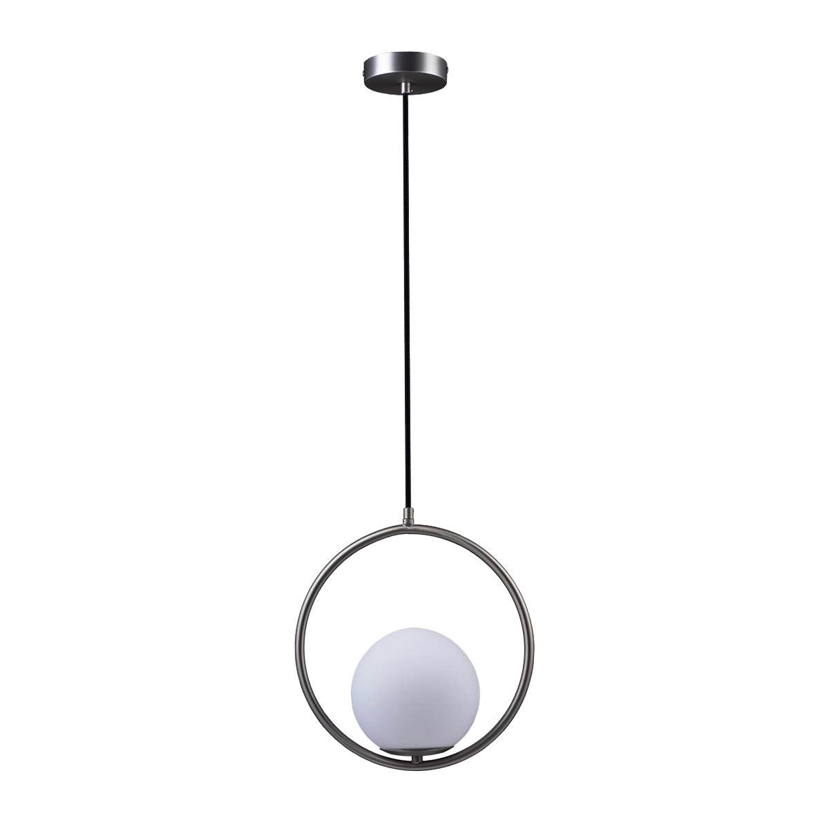 IP (пылевлагозащита): IP20. Вес брутто: 1.3400. Вес нетто: 1,0. Высота брутто, см: 20. Высота потолочной чаши/крепления, мм: 25. Высота, мм: 280. Габариты упаковки, см: 36x30x20. Гарантийный срок: 12. Диаметр потолочной чаши/крепления, мм: 100. Длина брутто, см: 36. Длина провода/цепи, м: 1,5. Интерьер: Прихожая, Спальня, Гостиная, Кухня, Детская, Кафе и ресторан. Количество источников света: 1. Коллекция: Glob. Лампы в комплекте: Нет. Максимальная высота, мм: 1800. Материал основания: Металл. Материал плафона: Стекло. Место установки: На потолок. Минимальная высота, мм: 325. Мощность W: 40. Наличие рассеивателя: Да. Направление источника света: Вниз. Напряжение V: 220-240V. Объем брутто, кв.м: 0.0220. Сертификат: ЕАЭС RU С-CN.НА75.В.01097/21. Способ монтажа: На планку. Страна бренда: Испания. Форма плафона: Шар. Форма светильника: Кольцо. Цвет основания: никель. Цвет плафона: белый. Цоколь: E27. Ширина брутто, см: 30 См. также