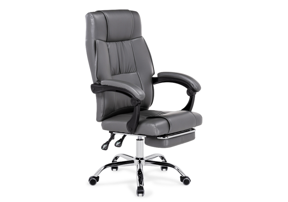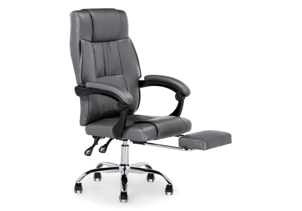 Диаметр крестовины: 60 см. Материал каркаса - Хромированный металл; Материал сиденья - Экокожа; Материал ножек - Хромированный металл; Материал обивки - Экокожа; Цвет каркаса - Хромированный металл; Цвет сиденья - Серый; Цвет ножек - Хромированный металл; Цвет обивки - Серый; Ширина - 61; Глубина - 66; Высота - 102; Ширина сиденья - 50; Глубина сиденья - 46; Высота сиденья - 47; Высота сиденья максимальная - 57; Высота максимальная - 112;