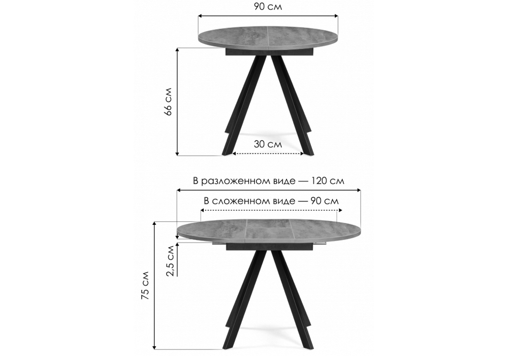 Деревянный стол Трейси 90 - это раскладной круглый стол с ЛДСП столешницей и металлическими ножками. Он оснащен раскладным механизмом бабочка, который позволяет увеличивать размер стола в несколько раз. Столешница из ЛДСП делает стол легким и прочным, | |