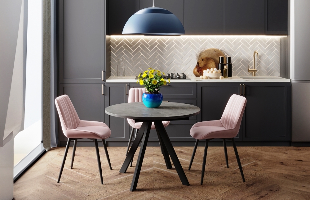 Деревянный стол Трейси 90 - это раскладной круглый стол с ЛДСП столешницей и металлическими ножками. Он оснащен раскладным механизмом бабочка, который позволяет увеличивать размер стола в несколько раз. Столешница из ЛДСП делает стол легким и прочным | |
