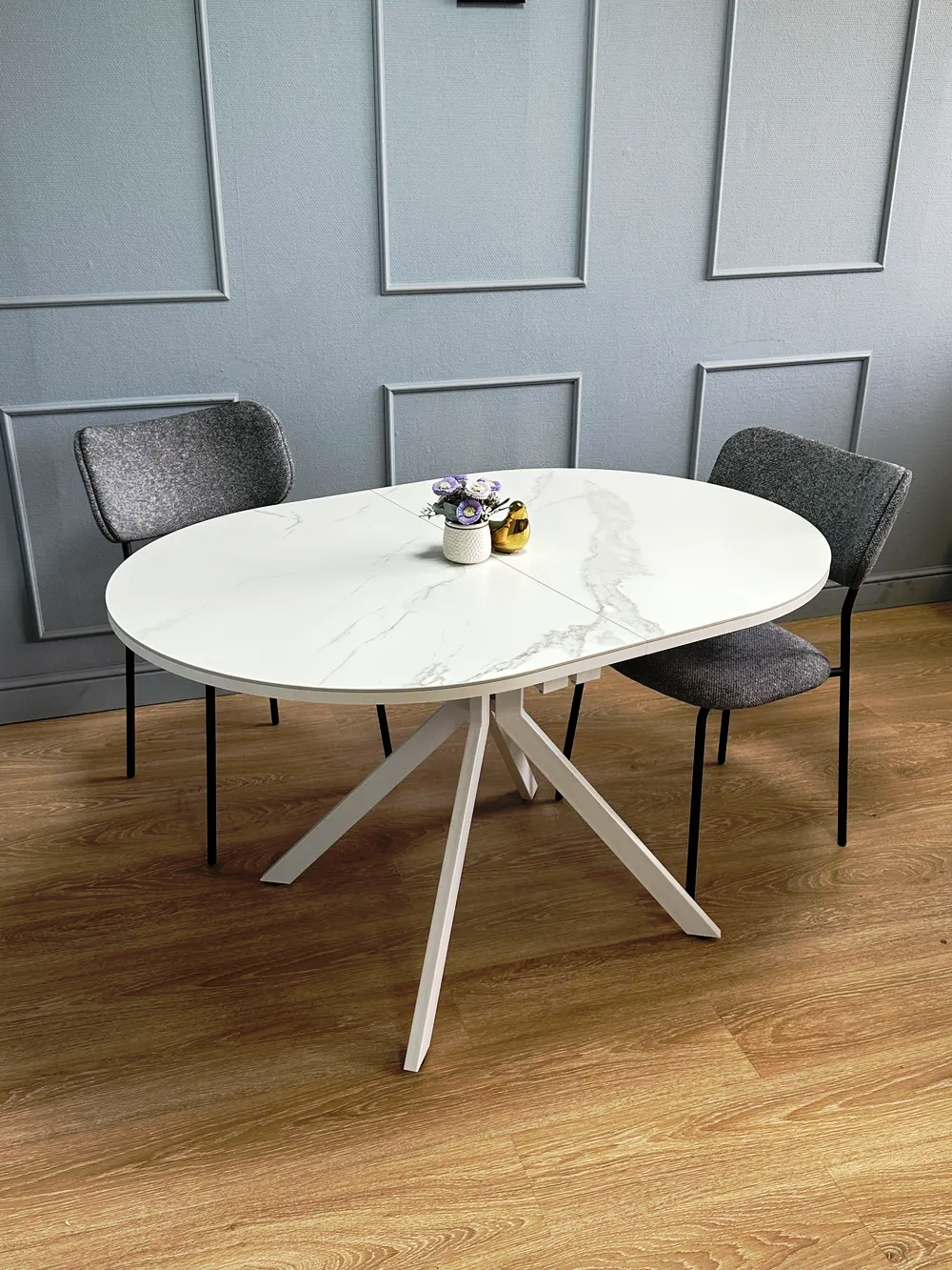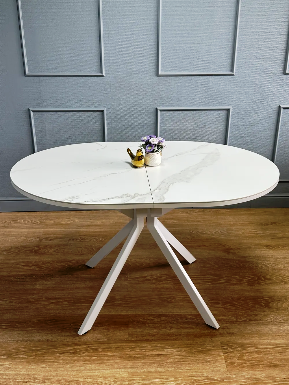 Стол Avilon: столешница - керамика мрамор белый, опоры - металл белый.‹br /›‹br /›Телескопический механизм раскладки: столешница раскладывается вместе с опорами.‹br /›Опоры стола в разложенном виде не мешают сидеть, позволяют сделать большую вставку и, главное, столешница в разложенном состоянии так же крепка и надежна, как и в сложенном, тогда как обычно раскладка стола уменьшает устойчивость столешницы к нагрузкам из-за большего плеча‹br /›Материал столешницы - керамика на подложке из ЛДСП 18 мм. ‹br /›Опоры стола выполнены из стального профиля размером 60*30 мм, что гарантирует их надёжность и устойчивость.‹br /›Такой стол станет оптимальным выбором для современной кухни благодаря своей функциональности, удобству и стильному дизайну.