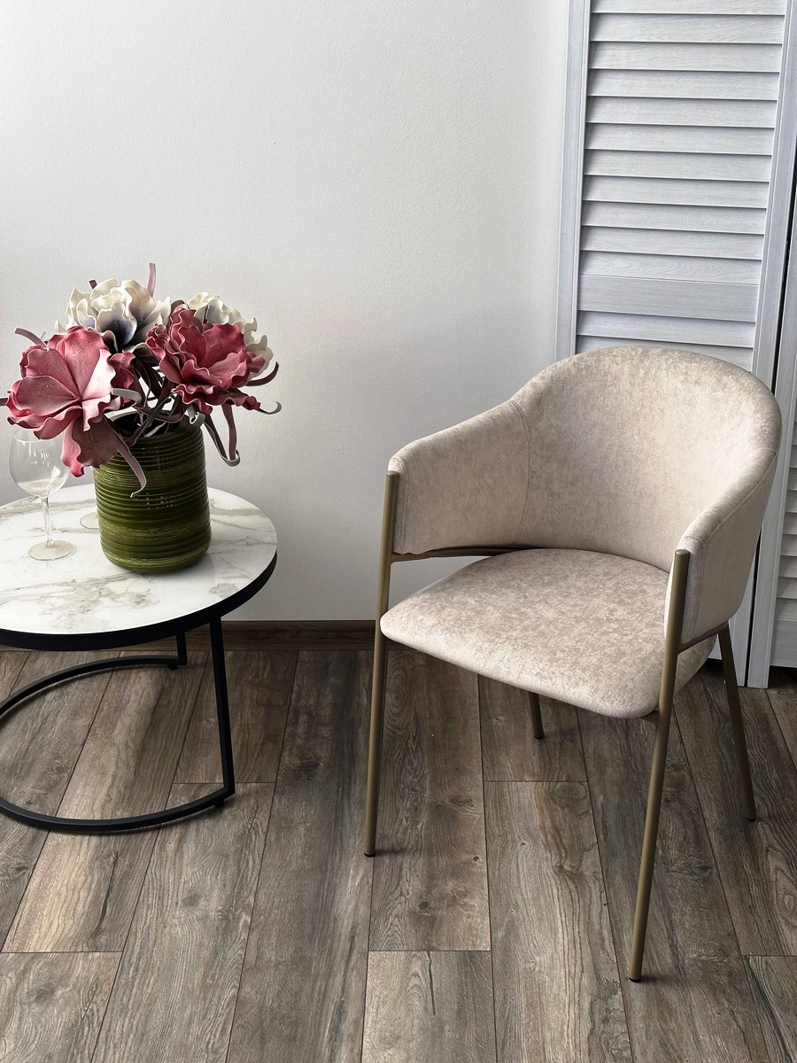 ‹h2›Стул ДИЛЛ Rain 8 слоновая кость‹/h2›Сиденье обито мягким микровелюром RAIN, плотность 360 г/м2, устойчивость к истиранию 70 000 циклов.‹/p›При своей мягкости и нежности коллекция Rain предназначена для усиленной эксплуатации в домашних условиях. Высокая износостойкость материала позволяет использовать его в коммерческих условиях (HoReCa).‹/p›Ткань легко чистится, а добавление в состав полиэфирного волокна позволяет удалять бытовые загрязнения губкой с мыльным раствором.‹/p›Ножки стула - металл в цвете шампань.‹/p›Номинальная нагрузка на стул 120 кг‹/p›Упакован - 2 шт./1 кор.‹/p›