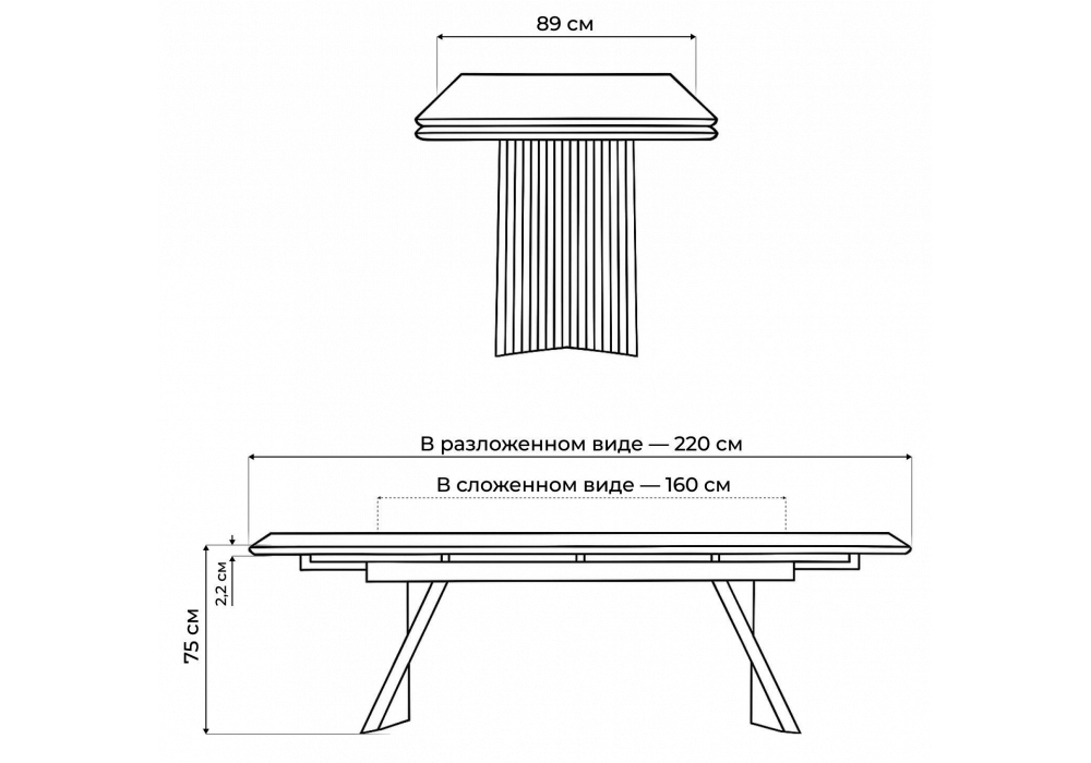 Раздвижной стол Вейв с элегантной матовой поверхностью 160(220)х89 см – идеальное решение для современной кухни или столовой. Благодаря продуманной конструкции за ним комфортно разместятся до 10 человек. Керамическая поверхность не боится горячего, влаги и пятен, а уход за ней занимает секунды.