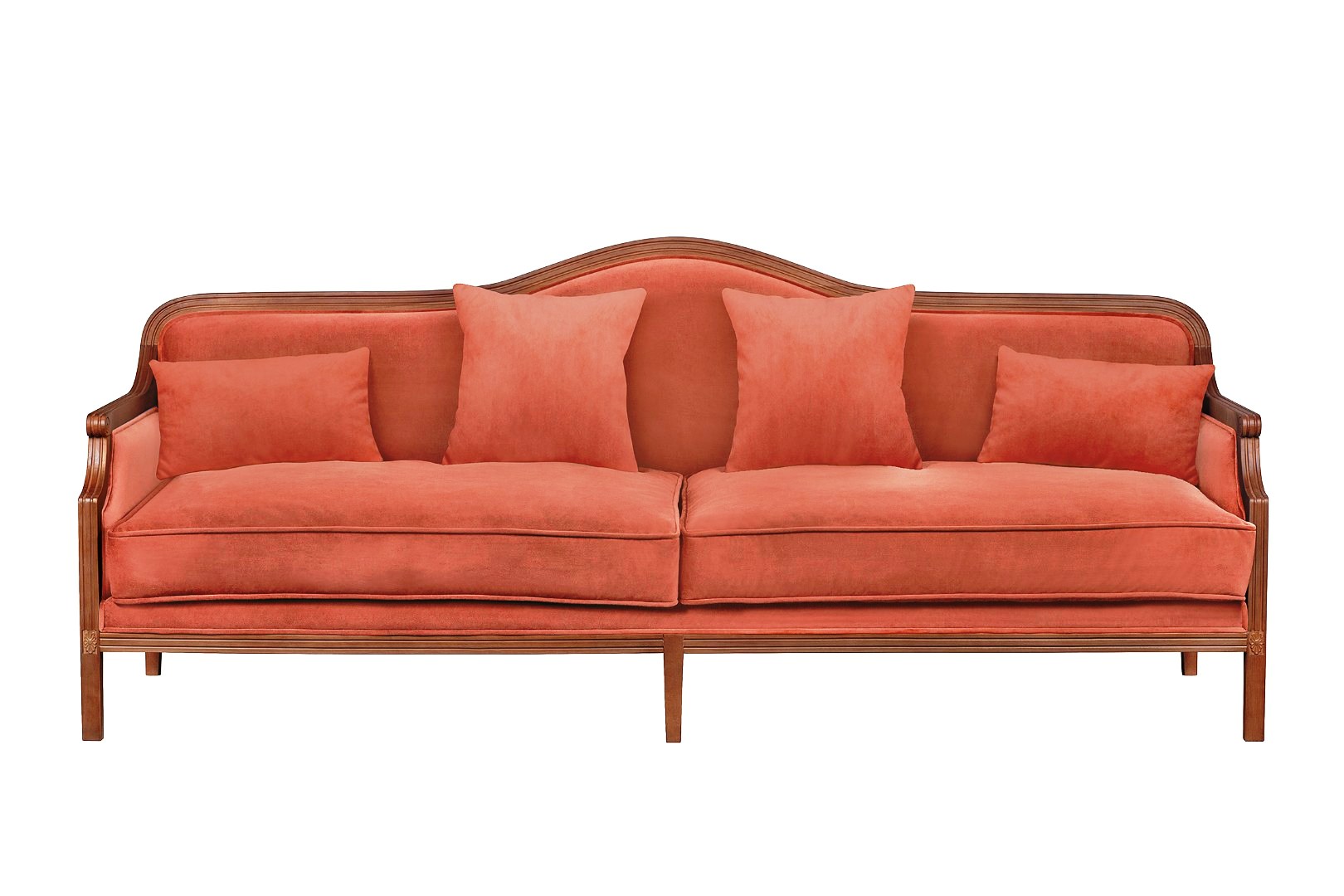 ‹p›В комплекте с моделью поставляются четыре декоративные подушки – две квадратных и две, поменьше размером, прямоугольной формы. Диван идеально подходит для обустройства спален и гостиных, выдержанных в классическом или винтажном стиле.‹/p›
