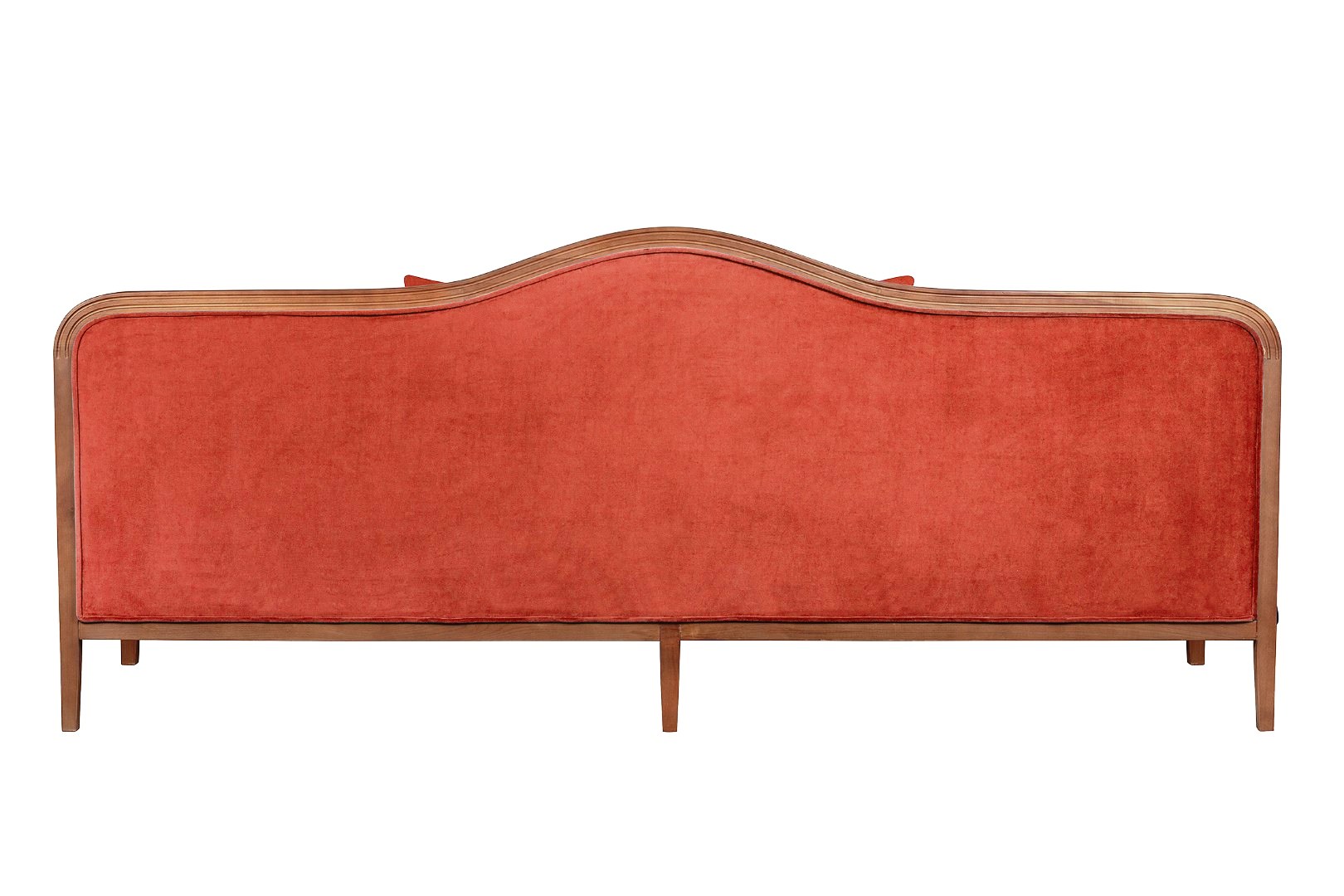 ‹p›Четырехместный красный диван с обивкой из велюра Madesta Red V2 выполнен в приятных тонах на основе прочного каркаса из массива бука. Поверхность модели почти полностью покрывает обивка красного цвета, приятная на ощупь и устойчивая к истиранию. Изящный деревянный контур с грациозными изгибами, проходящий по всему периметру изделия, в нескольких местах декорирован резьбой. Высокая спинка с волнообразным верхом плавно переходит в боковые стенки, закругляясь по бокам. На широком горизонтальном основании располагается пышное сиденье. Длинные прямые ножки гармонично вписываются в общий дизайн и подчеркивают элегантность изделия.‹/p›